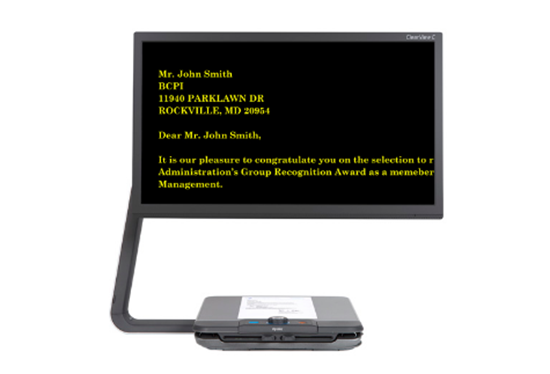 - Powiększalnik ClearView C Speech z monitorem, kamerą w obudowie i stolikiem X-Y,