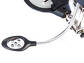 Umieszczone na pionowym statywie soczewki można przybliżać do obserwowanego obiektu lub od niego oddalać. Wbudowane podświetlenie to pięć jasnych diod LED, które równomiernie oświetlają obszar roboczy. Przyrząd jest zasilany za pomocą zasilacza (w zestawie) lub trzech baterii AA (nie są dołączone do zestawu).