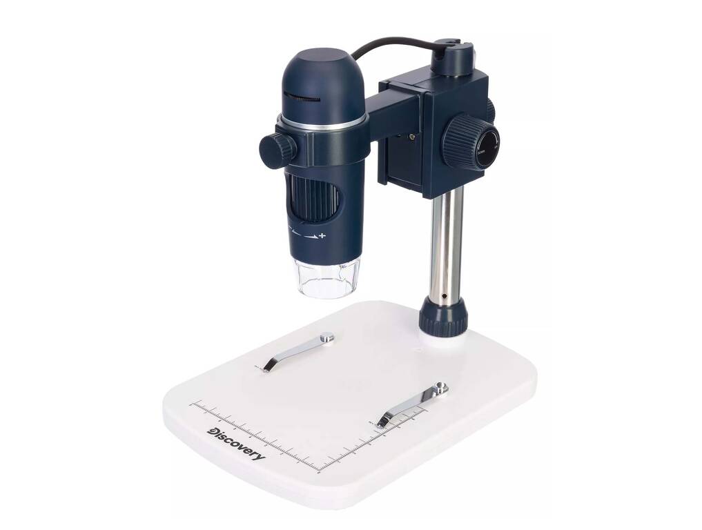 Mikroskop jest zamontowany na statywie, jednak można go używać również bez niego. Stolik ma dwa metalowe zaczepy i przymiar. Korpus mikroskopu jest pokryty gumą. Taka powłoka jest przyjemna w dotyku, zapewnia wygodny chwyt i chroni urządzenie przed drobnymi zarysowaniami. Discovery Artisan 32 to wspaniały mikroskop cyfrowy do zastosowań profesjonalnych i hobbystycznych, jest łatwy w obsłudze i ma wiele przydatnych funkcji.