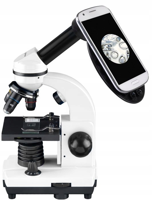 Mikroskop wyposażono także w fotoadapter do smartfonów umożliwiający wykonywanie zdjęć i nagrywanie filmów z użyciem smartfonów