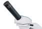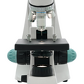 Głowica monokularowa jest wygodnie nachylona pod kątem 45° i obracana w zakresie 360°. Okular o powiększeniu 10 razy wyróżnia się wyraźnym i szerokim polem widzenia. Obiektywy achromatyczne mają powiększenie wynoszące 4, 10 i 40 razy. Obiektyw o powiększeniu 40 razy jest również wyposażony w ochronne oprawy z mechanizmem sprężynowym w przedniej części. Zakres powiększenia mikroskopu wynosi od 40 do 400 razy, co doskonale sprawdza się podczas badania dużych i średnich obiektów.