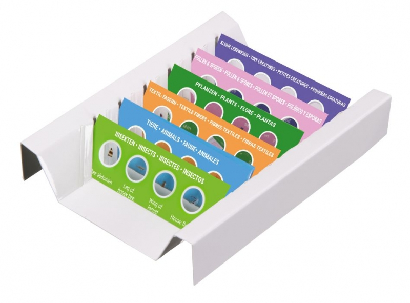 Zestaw zawiera 6 szkiełek mikroskopowych z 24 różnymi trwałymi preparatami